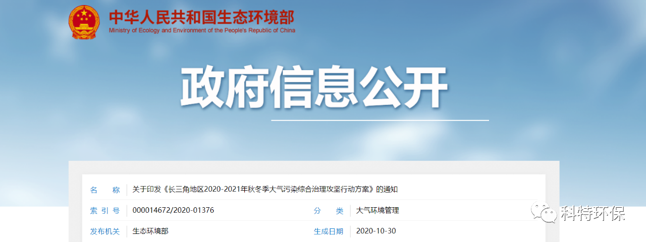 生態(tài)環(huán)境部、國家發(fā)展和改革委員會、工業(yè)和信息化部等10部門與上海、江蘇、浙江、安徽等4?。ㄊ校┤嗣裾?lián)合印發(fā)《長三角地區(qū)2020-2021年秋冬季大氣污染綜合治理攻堅(jiān)行動方案》(以下簡稱《行動方案》)